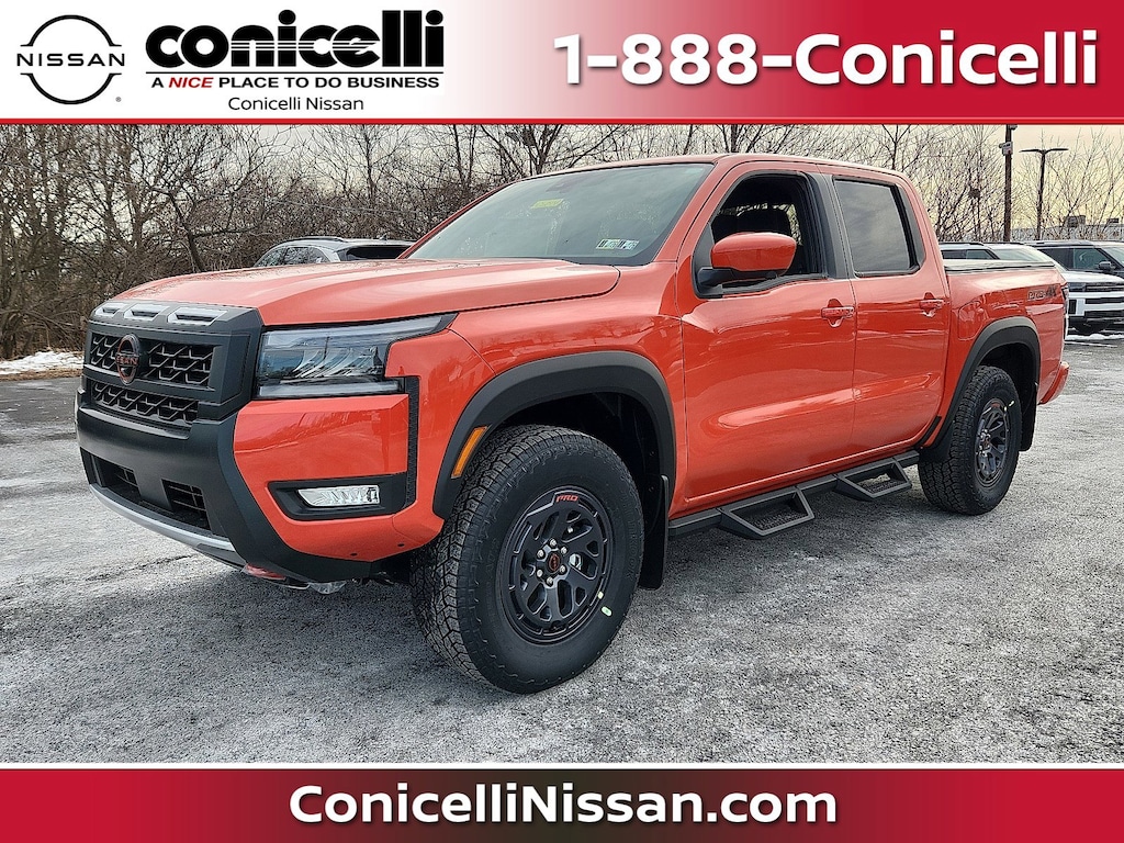 Priced to sell! $1,429 below MSRP! *Backup Camera* *Bluetooth* *Heated Front Seats* *Keyless Start* This 2026 Nissan Frontier PRO-4X is Afterburn Orange with a Charcoal W/Lava Red St interior. This Nissan Frontier PRO-4X comes with great features including: Lane Assist, Blind Spot Assist, Backup Camera, Heated Steering Wheel, Heated Front Seats, Bluetooth, Satellite Radio, Parking Assist, Remote Engine Start, and 4-Wheel Drive . Buy with confidence knowing Conicelli Nissan has been exceeding customer expectations for many years and will always provide customers with a great value!