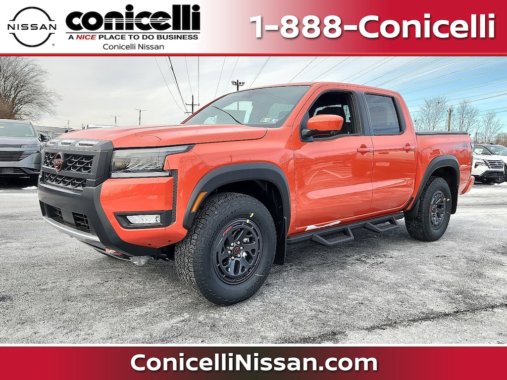 This 2026 Nissan Frontier PRO-4X will sell fast! Priced to sell at $1,429 below MSRP! 4-Wheel Drive. This Frontier has many valuable options! Backup Camera. Bluetooth Connectivity. Satellite radio. Aux. Audio Input. -Heated Front Seats -Auto Climate Control -High Intensity Headlights -Automatic Headlights -Fog Lights -Multi-Zone Air Conditioning -Remote Start -Security System -Parking Sensors -Parking Assist -Keyless Entry -Steering Wheel Controls -Leather Steering Wheel -Automatic Transmission -Rear Bench Seats On top of that, it has many safety features! -Brake Assist -Traction Control -Stability Control Save money at the pump, knowing this Nissan Frontier gets 22.0/18.0 MPG! Call Conicelli Nissan at (888) 694-5088 to confirm availability and schedule a no-obligation test drive! We are located at 1222 Ridge Pike, Conshohocken, PA 19428.